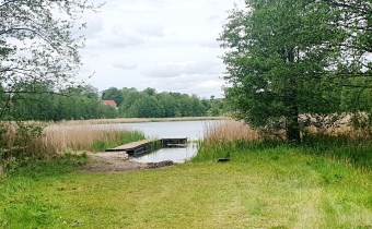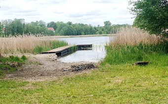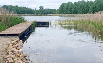 Bezpośrednie sąsiedztwo jeziora Grabnik i zagospodarowanej gminnej plaży z pomostem